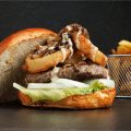 קציצה של 220 גרם בובו בורגר עם רצועות אנטריקוט חסה ובצל